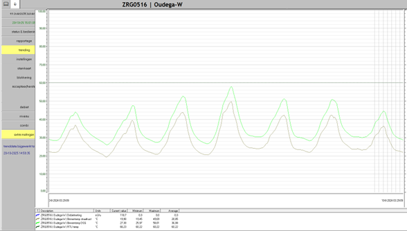 Periode: 27-6-2025 tot 4-7-2025, max buiten temp 33 graden (13-8)