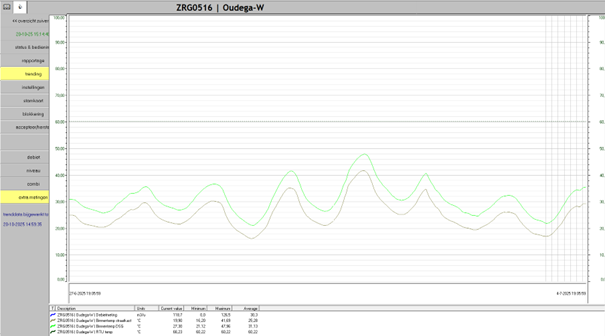 Periode: 27-6-2025 tot 4-7-2025, max buiten temp 32 graden (1-7)